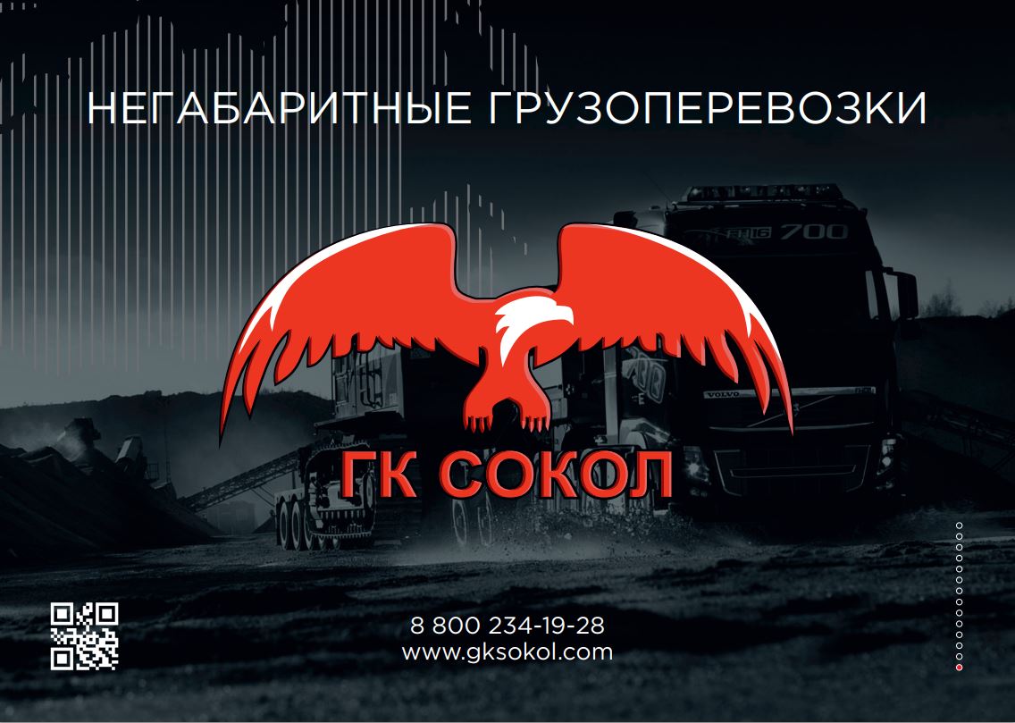 ООО «Группа Компаний «Сокол» предлагает Вам услуги по организации и осуществлению перевозок автомобильным транспортом негабаритных и тяжеловесных грузов до 100 тонн на 1 трале.